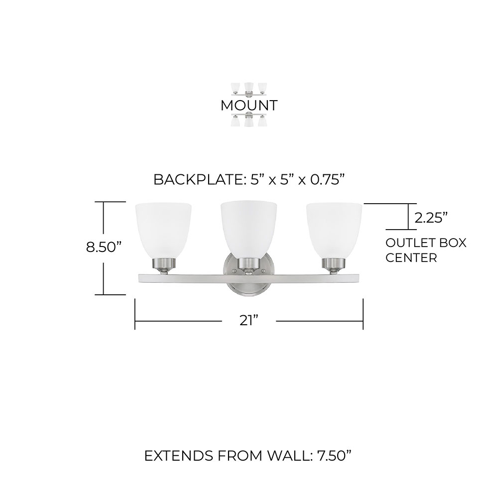 Dimensions: 21" W x 8.5" H x 7.5" D