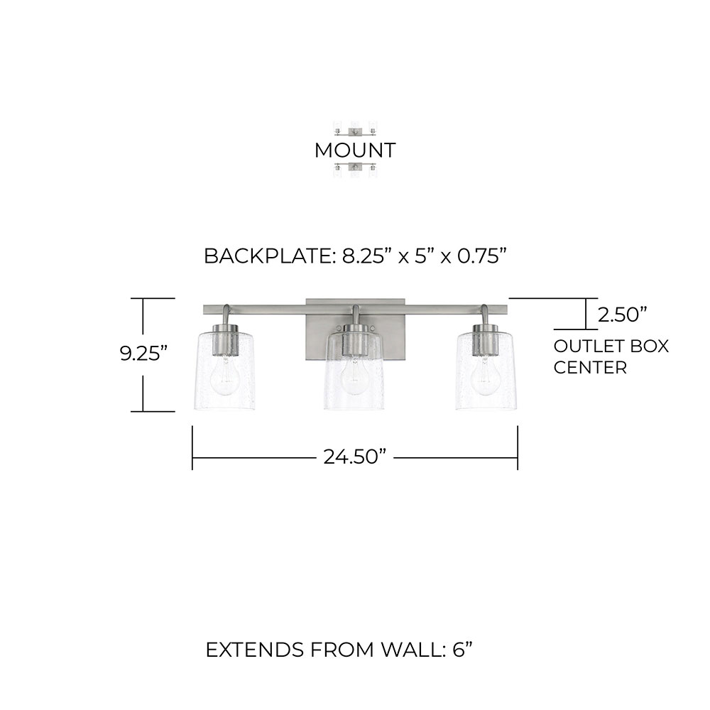 Dimensions: 24.5" W x 9.25" H x 6" D