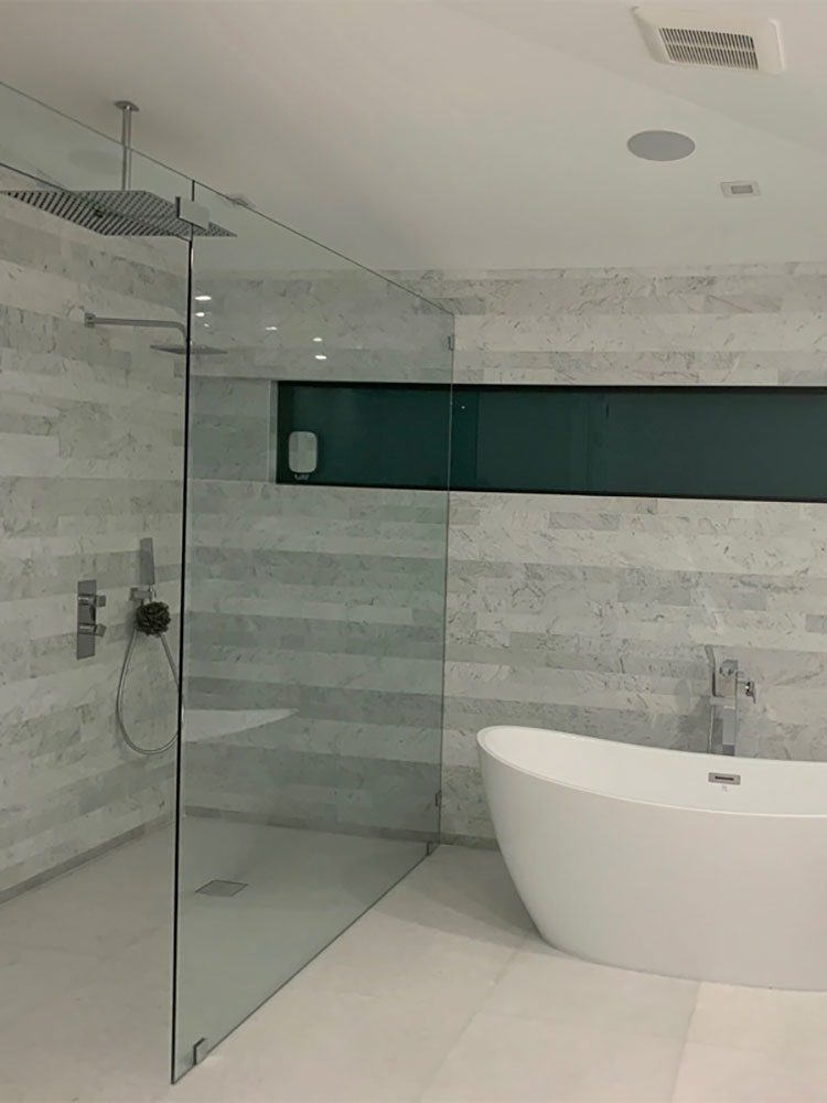 • Use a high-quality white thinset to prevent any shadowing or discoloration.