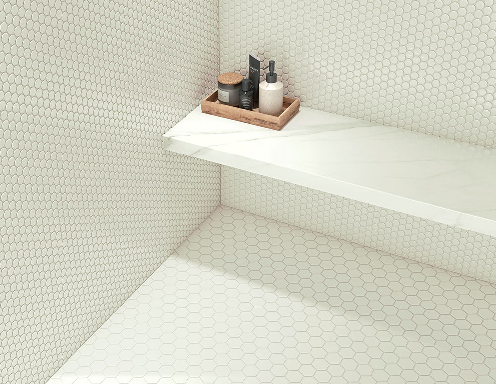 • Use a high-quality white thinset to prevent any shadowing or discoloration.